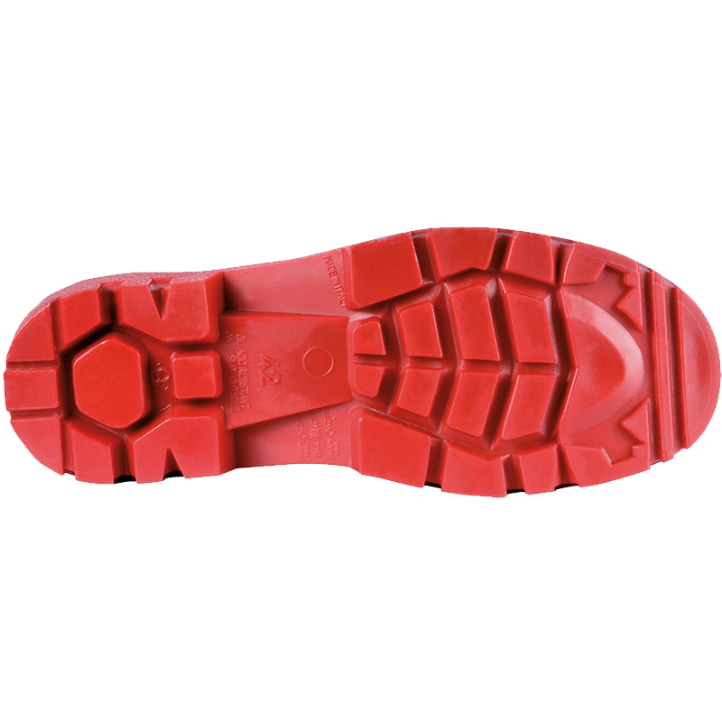 Plantilla: EVANIT con especial mezcla de EVA y nitrilo, de gran confort y espesor variable (12mm - 8mm - 3,8mm). Termoformada, anatómica, perforada y forrada con tejido muy transpirable. Antiestática gracias a un tratamiento especial de la superficie y a costuras realizadas con hilos conductores