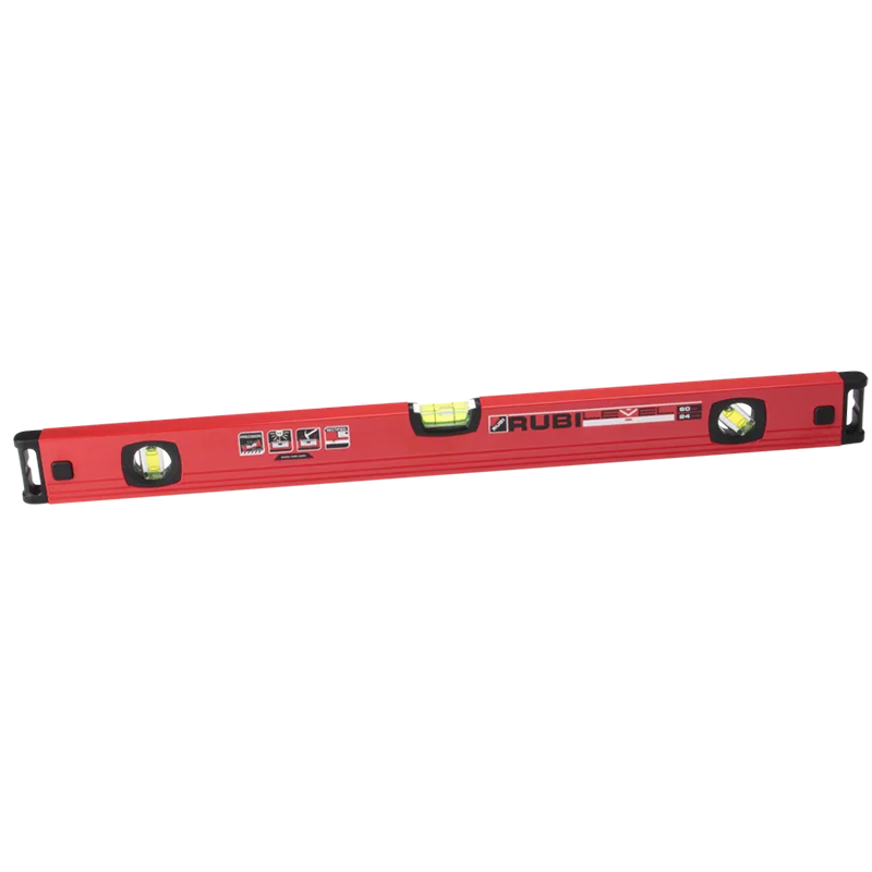 La base de los niveles RUBILEVEL está mecanizada, en todos sus modelos, para garantizar una precisión constante de 0,5 mm/m. Sus tres viales acrílicos, sellados con resina epoxi, ofrecen una alta resistencia a los impactos, a la vez que a los efectos negativos de los rayos UV, permiten comprobaciones y verificaciones de niveles horizontales, verticales y en pendientes de 45º.